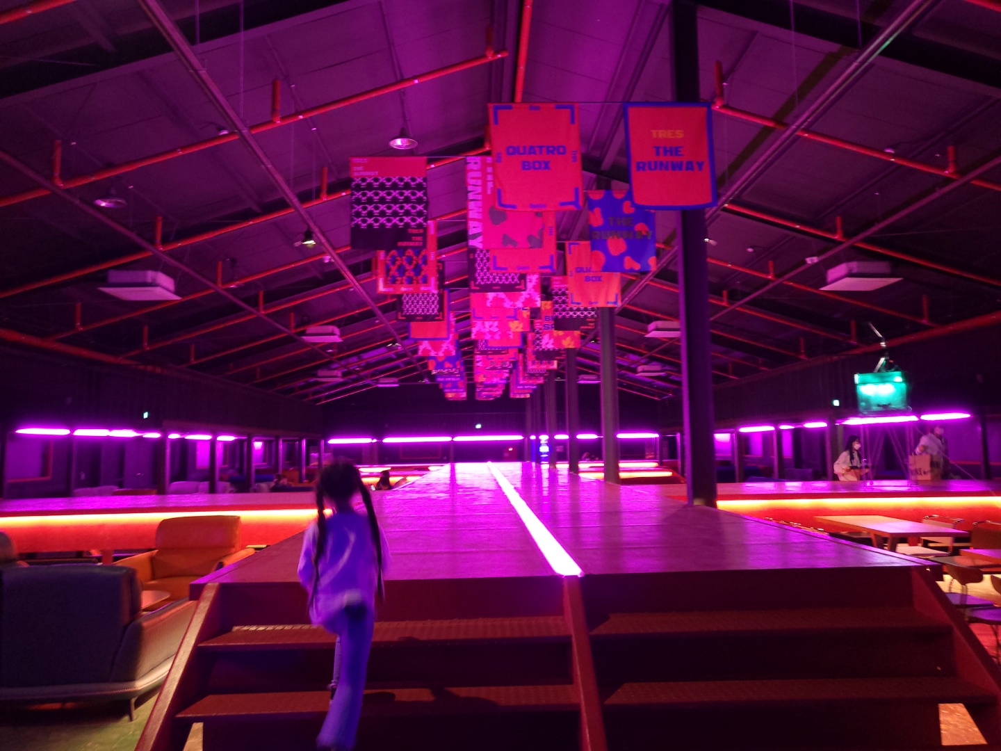 2층은 노키즈존으로 되어있어요. 런웨이처럼 생긴 공간과 야외공간